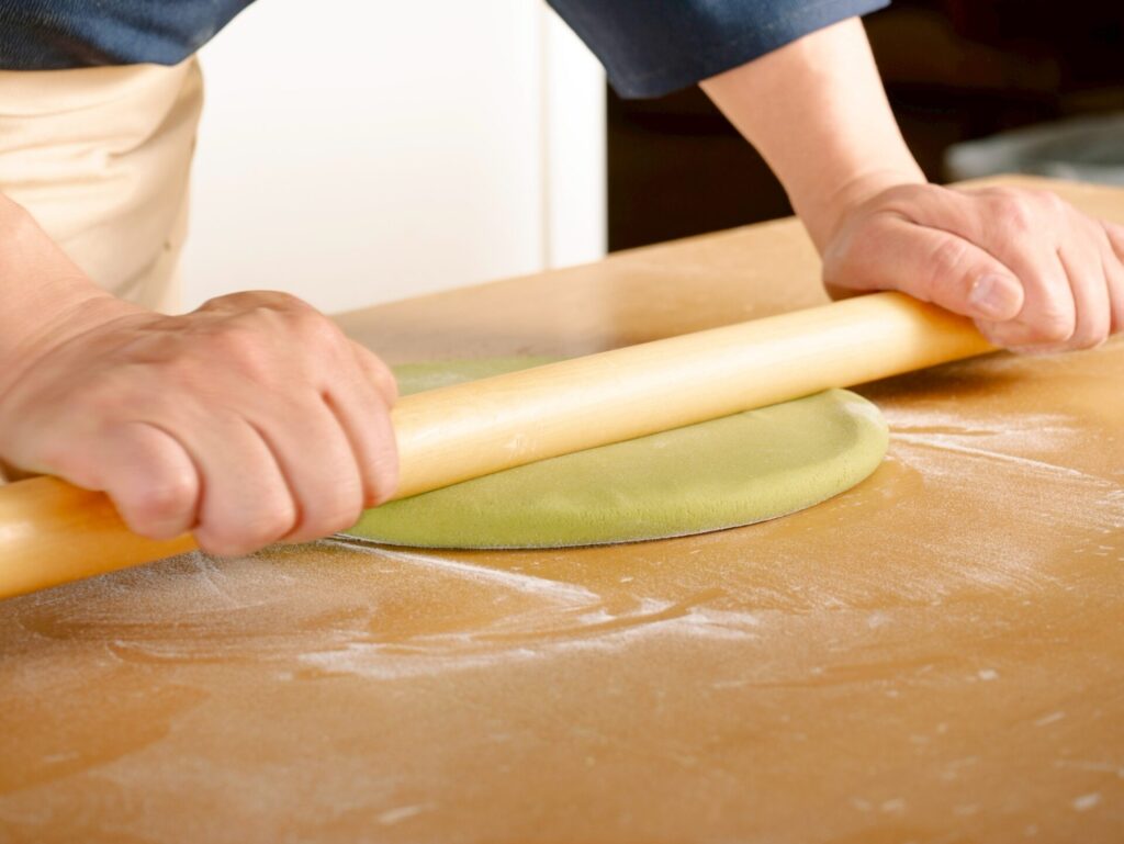 国産蕎麦粉と宇治抹茶を使って、自分の手で本格的な抹茶蕎麦を打ちます。