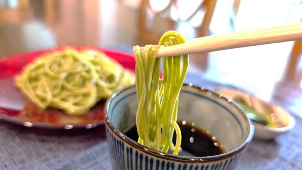 鮮やかな緑色と上品な風味は、通常の蕎麦とはひと味違う特別な体験。